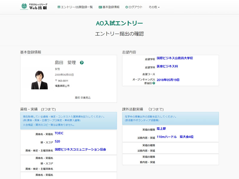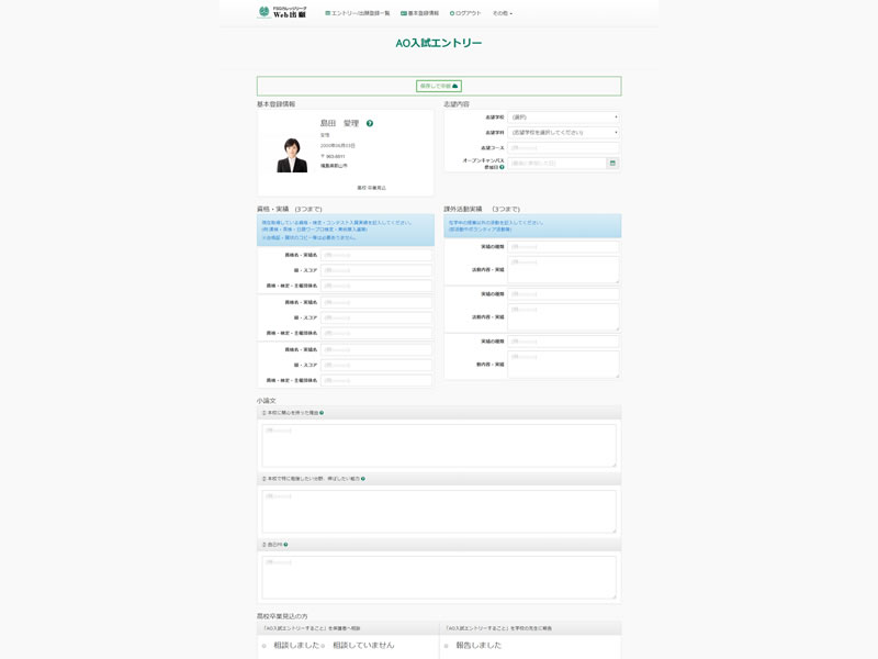 AO入試エントリーや出願で提出した内容は、PDF形式で印刷して頂く事ができます。