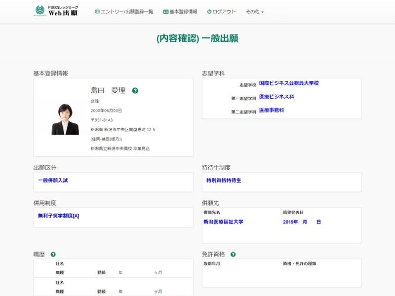 出願する学校・学科を選択すれば、併願できる制度やその詳細が表示されるなど、紙の入学願書に比べても簡単で便利な仕組みになっています。